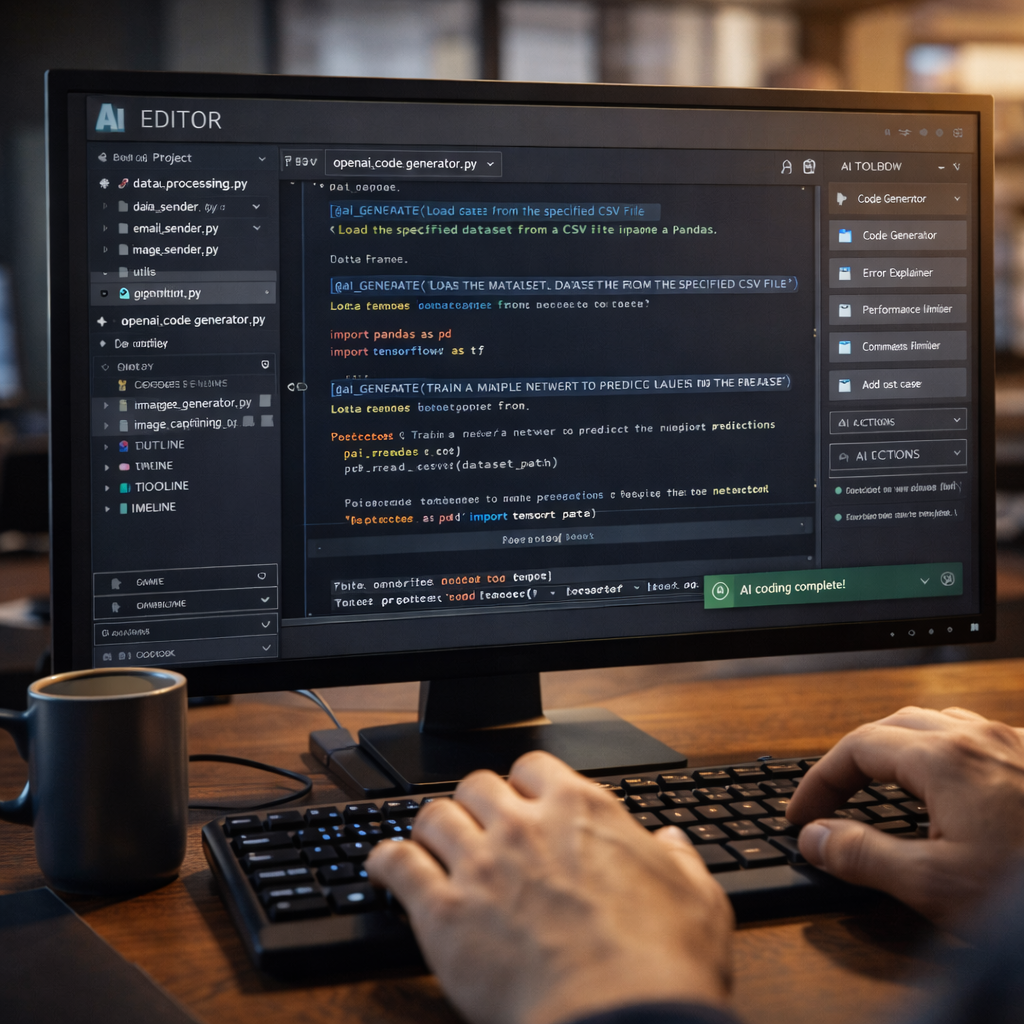 構築済みのAIエディタを標準搭載。世界最高レベルのスペックを持つ「玄人筋 AI Edge Server」をフル活用し、巨大VRAMが必要な「コーディング特化モデル」をローカルで動かしながら、AIコーディング支援を月額無料で無制限に利用できます。機密コードを外部に送信することなく、開発効率を劇的に向上させます。